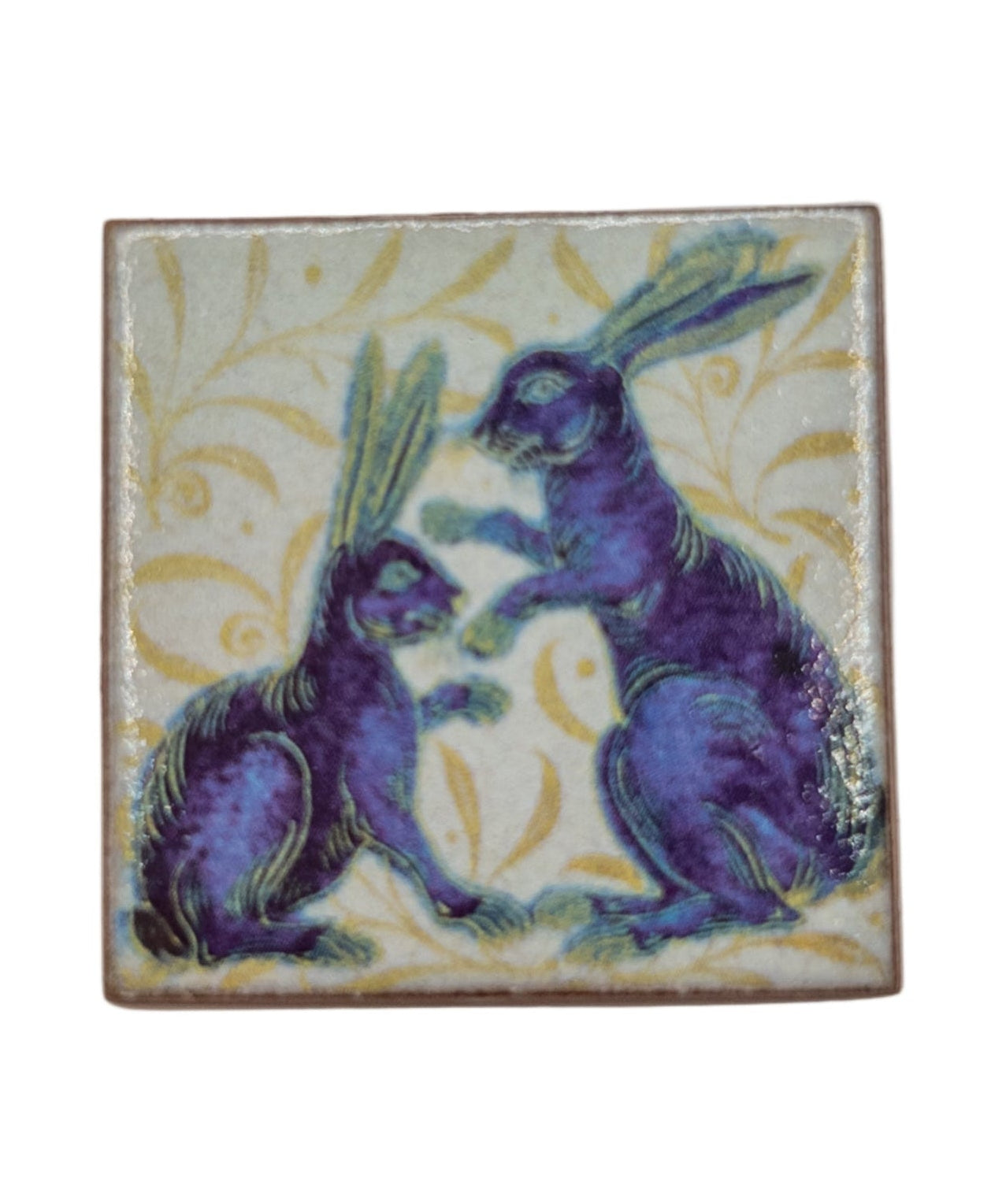 Handmade in the Stockwell Ceramics studio overlooking the beautiful Tamar Valley in South East Cornwall, this ceramic brooch is inspired by the William De Morgan's Hares Tile.
