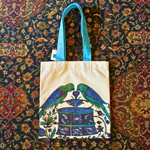 This tote bag is part of our exclusive Arab Hall range, featuring detail from the decorative parrot tile panel from the south wall of the Arab Hall, Leighton House.